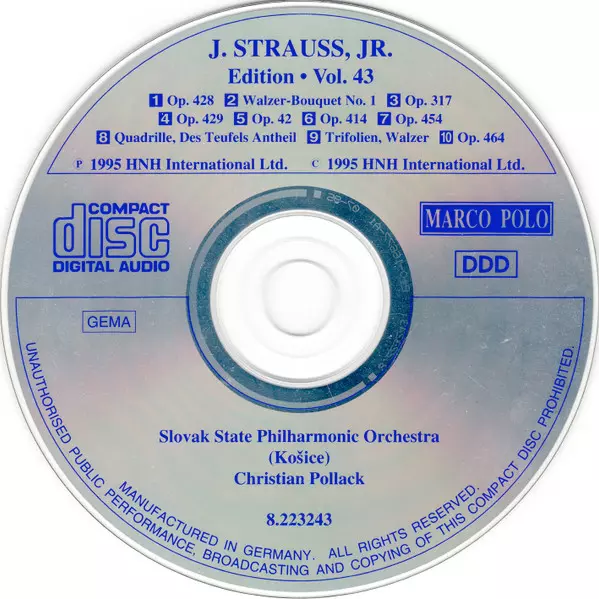 | Artiste | Johann Strauss Jr. | Slovak State Philharmonic Orchestra, Košice | Christian Pollack |
