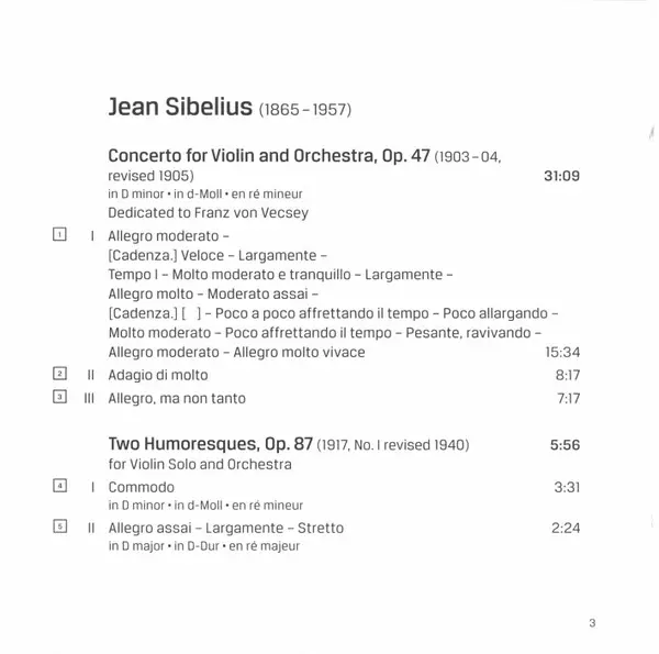 | Violin Concerto In D Minor, Op. 47 | 31:09 min | |