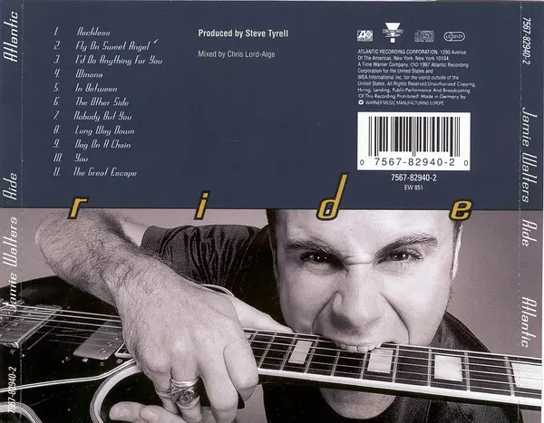 Jamie Walters: Ride La version sur CD en Norme édition. Cette édition particulière a été publiée en L'Europe dans la maison d'édition Atlantic En collaboration avec Tyrell Music Group année 1997. Album couvre tous les genres Rock, Pop, Pop Rock et Soft Rock.