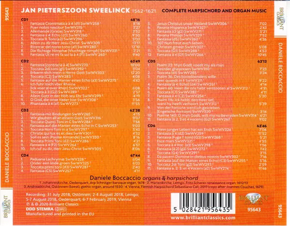 Jan Pieterszoon Sweelinck: Complete Harpsichord And Organ Music La version sur 6CD en Norme édition. Cette édition particulière a été publiée en L'Europe dans la maison d'édition Brilliant Classics Le 26 juin 2020. Album couvre tous les genres Musique classique, Musique baroque et Renaissance Music.