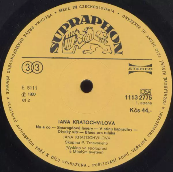 VG+ VG+ Petites lignes de poils, rayures mineures, pochette légèrement usée, !!!podpisy!!! kratochvílová a spol