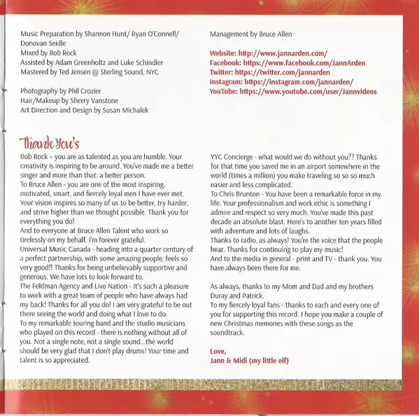 Jann Arden: A Jann Arden Christmas La version sur CD en Norme édition. Cette édition particulière a été publiée en Canada dans la maison d'édition Universal Music Canada Le 6 novembre 2015. Album couvre tous les genres Pop, Jazz et Holiday.