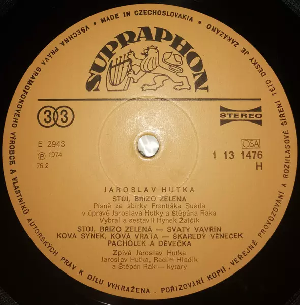 | Plus d'informations sur les disques vinyles | 1976 Pressing Repress Stereo Supraphon |