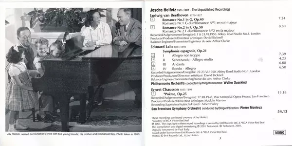 | Artiste | Ludwig van Beethoven | Jascha Heifetz | Ernest Chausson | Édouard Lalo |