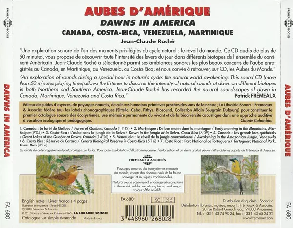 Titre | Aubes D’Amérique - Canada, Costa Rica, Venezuela, Martinigue (Dawns In America) |