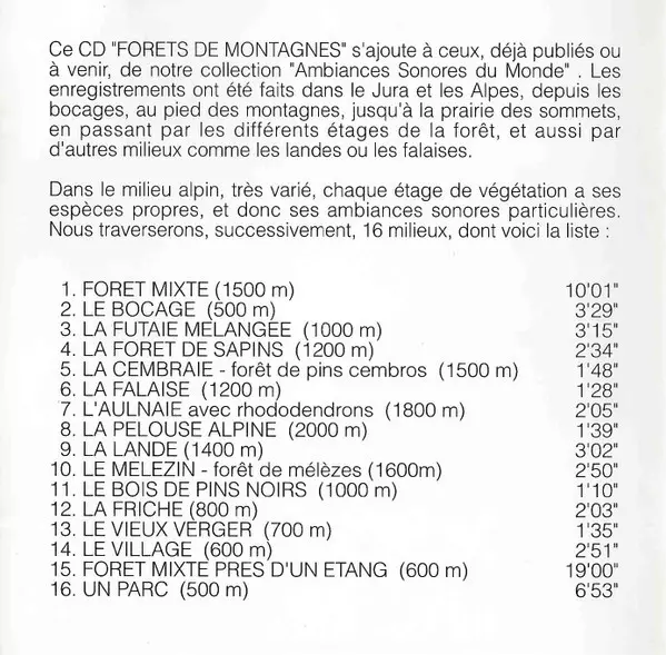 Titre | Forêts De Montagnes / Mountain Medley |