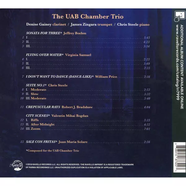 | Artiste | Denise Gainey | Jeffrey Boehm | Virginia Samuel | William Price | Chris Steele | Robert J. Bradshaw | Valentin Mihai Bogdan | Juan María Solare | The UAB Chamber Trio | James Zingara |