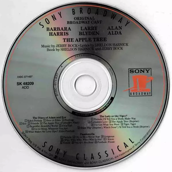 | 16 | Barbara Harris, Alan Alda, Larry Blyden, "The Apple Tree" Company, Marc Jordan: Make Way : Which Door?; I'll Tell You A Truth (Reprise) | 3:40 min | |