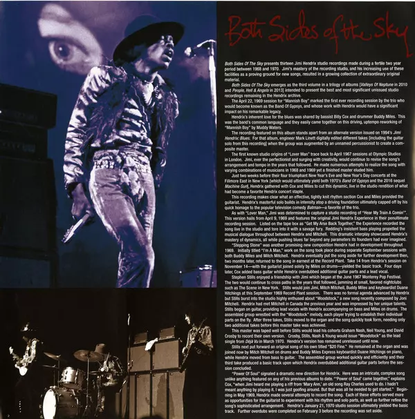 Music history from the Hendrix archives It's not every day: with "Both Sides Of The Sky", another posthumous Jimi Hendrix album is released in 2018 with a few surprises. This is the third and final part of a trilogy with archival recordings. So far, "Valleys Of Neptune" (2010) and "People, Hell And Angels" (2013) have been released. On "Both Sid...