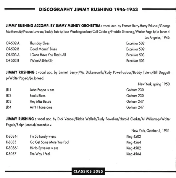 CD Jimmy Rushing: The Chronological Jimmy Rushing 1946-1953