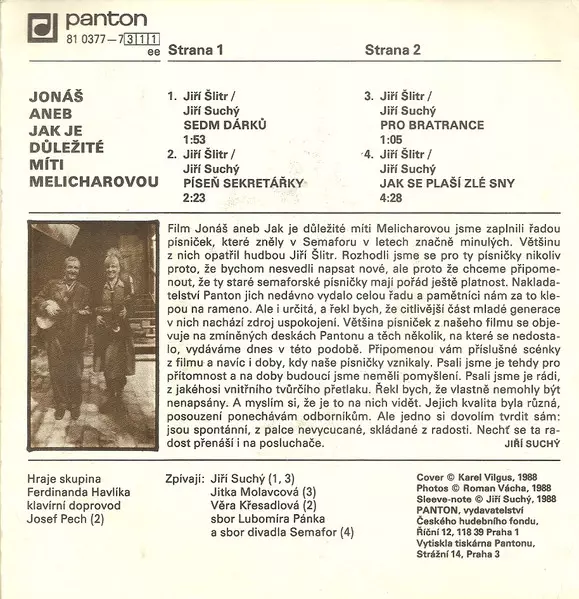 | Titre | Jonáš Aneb Jak Je Důležité Míti Melicharovou |