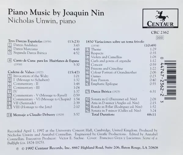 | Titre | Piano Music By Joaquin Nin |