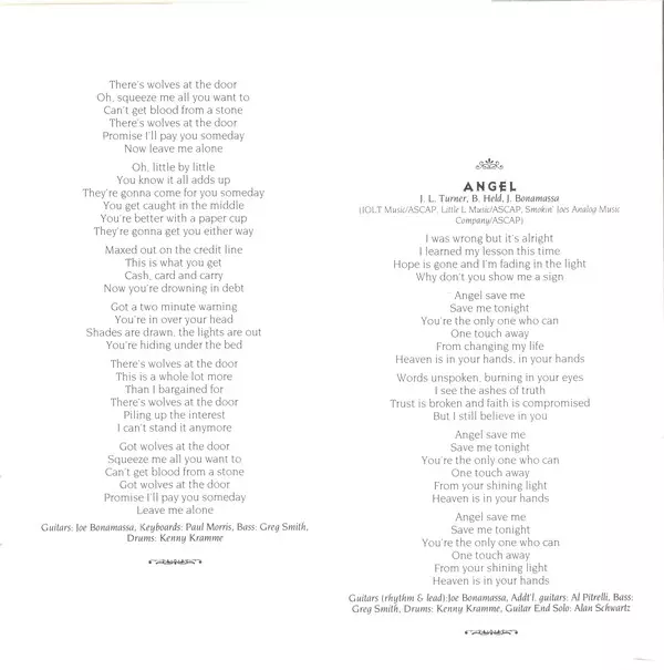 Bass Greg Smith (6) | Drums Kenny Kramme | Guitar Joe Bonamassa | Keyboards Paul Morris | Written-By Bob Held, Joe Bonamassa, Joe Lynn Turner