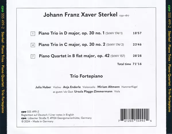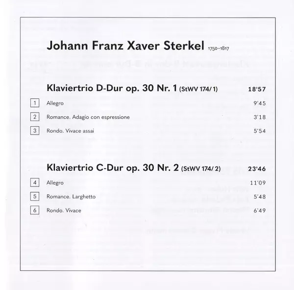 | Artiste | Johann Franz Xaver Sterkel | Ursula Plagge-Zimmermann | Trio Fortepiano |