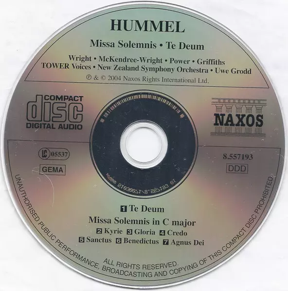 | Artiste | Johann Nepomuk Hummel | Uwe Grodd | New Zealand Symphony Orchestra | Voices New Zealand | Patricia Wright | Zan Wright | Patrick Power | David Griffiths |