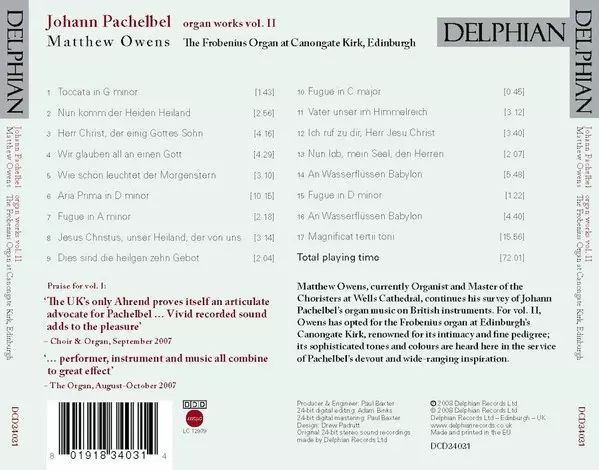 CD Johann Pachelbel: Pachelbel - Organ Works Vol II