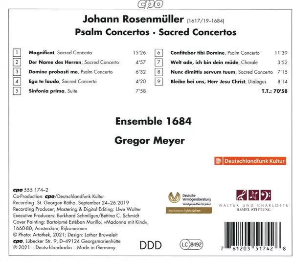 Artiste | Johann Rosenmüller | Gregor Meyer | Ensemble 1684 |