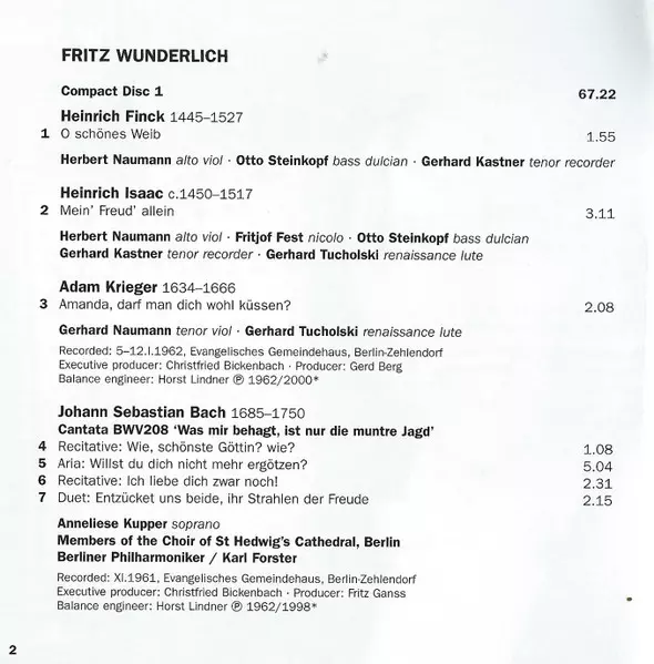 Composed By Heinrich Finck | Dulcian [Bass Dulcian] Otto Steinkopf | Recorder [Tenor Recorder] Gerhard Kastner | Viol [Alto Viol] Herbert Naumann