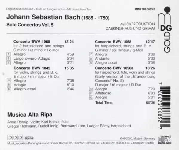 | Concerto BWV 1058 For Harpsichord, Strings And B. C. G-Minor | 12:47 min | |