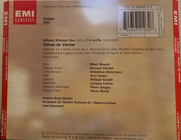 | Artiste | Erich Wolfgang Korngold | Johann Strauss Jr. | Mady Mesplé | Orchestre Du Théâtre National De L'Opéra-Comique | Julius Bittner | Bernard Sinclair | Jean Doussard | Eugène Cools |