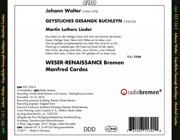 Artiste | Manfred Cordes | Weser-Renaissance | Johann Walter |