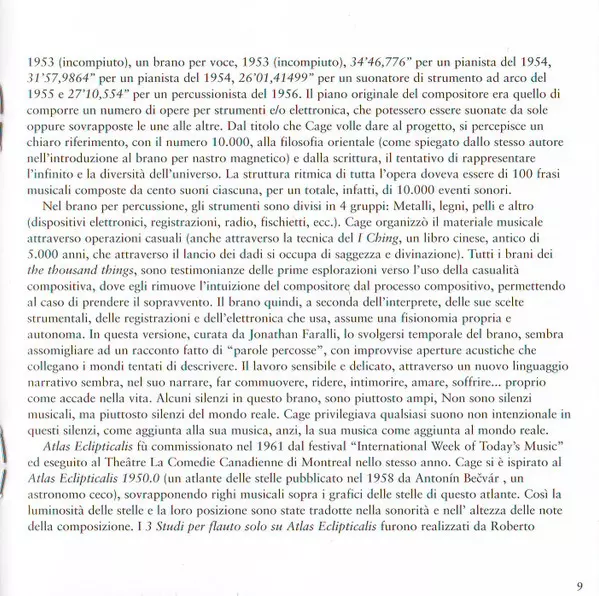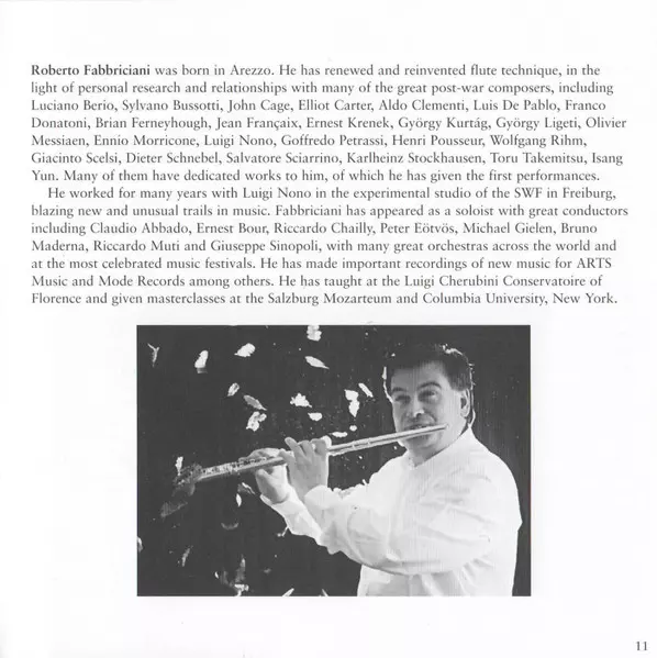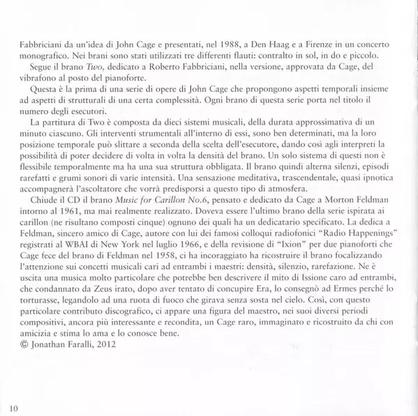 | Artiste | John Cage | Roberto Fabbriciani | Jonathan Faralli |