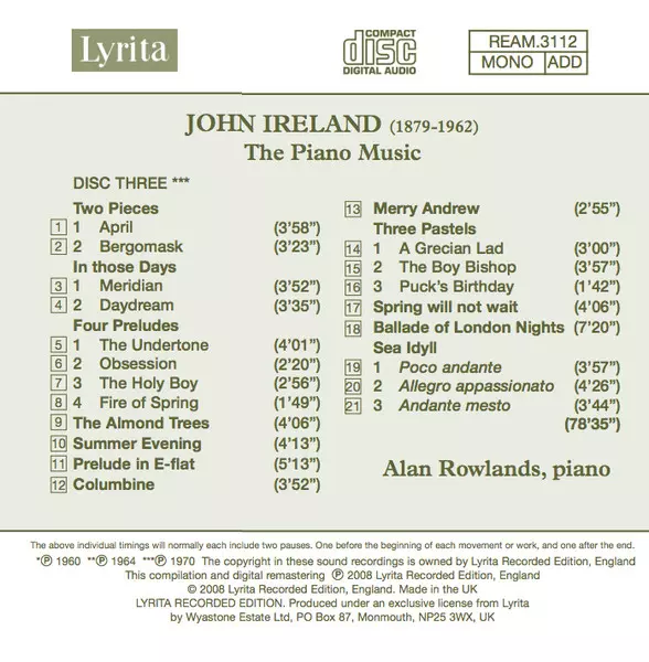 Artiste | John Ireland | Alan Rowlands |