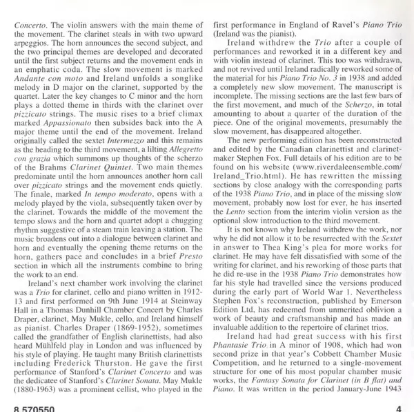 | Titre | Sextet • Clarinet Trio • Fantasy Sonata • The Holy Boy |