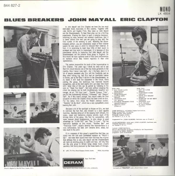 John Mayall: Blues Breakers La version sur CD en Remasterisé édition. Cette édition particulière a été publiée en L'Europe dans la maison d'édition Deram Le 3 juillet 2006.