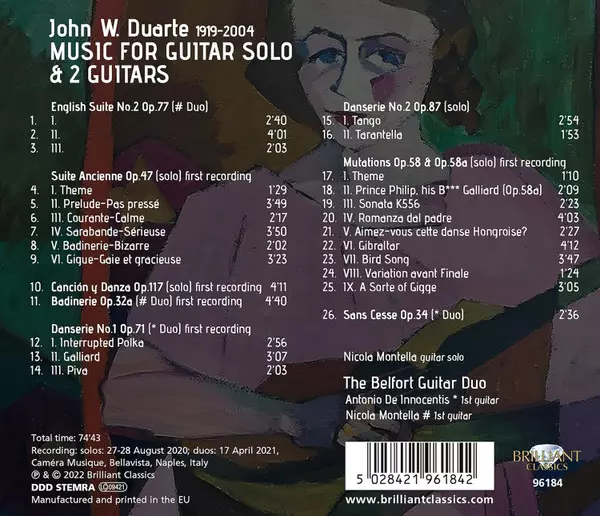 | Artiste | John W. Duarte | The Belfort Guitar Duo | Antonio De Innocentis | Nicola Montella |