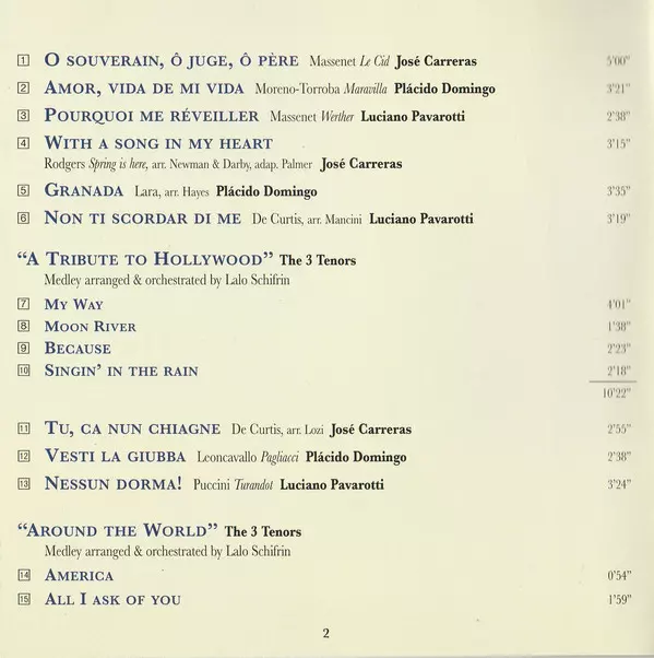 | 1 | José Carreras: O Souverain, Ô Juge, Ô Père | 5:00 min | |