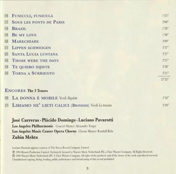| 27 | The Three Tenors: Libiamo Ne' Lieti Calici (Brindisi) | 3:20 min | |