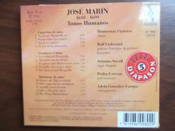 | Artiste | Rolf Lislevand | Arianna Savall | Montserrat Figueras | Pedro Estevan | Adela González-Campa | José Marín |