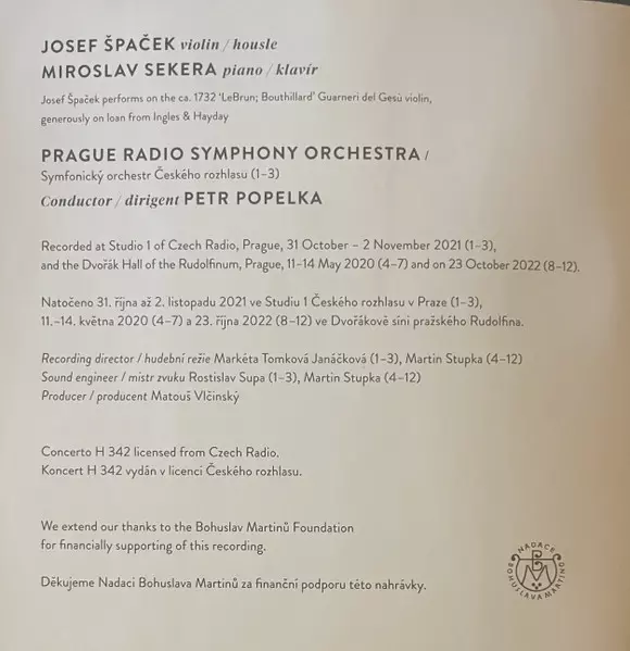 | Artiste | Bohuslav Martinů | Prague Radio Symphony Orchestra | Miroslav Sekera | Josef Špaček | Petr Popelka |
