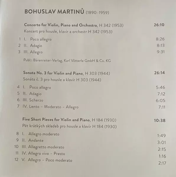 | Concerto For Violin, Piano And Orchestra H 342 | ||