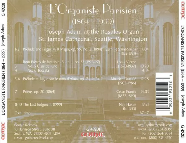| Titre | L' Organiste Parisien, 1864-1999 |
