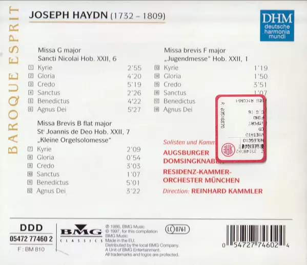 | Artiste | Joseph Haydn | Augsburger Domsingknaben | Reinhard Kammler | Residenz Kammerorchester München |