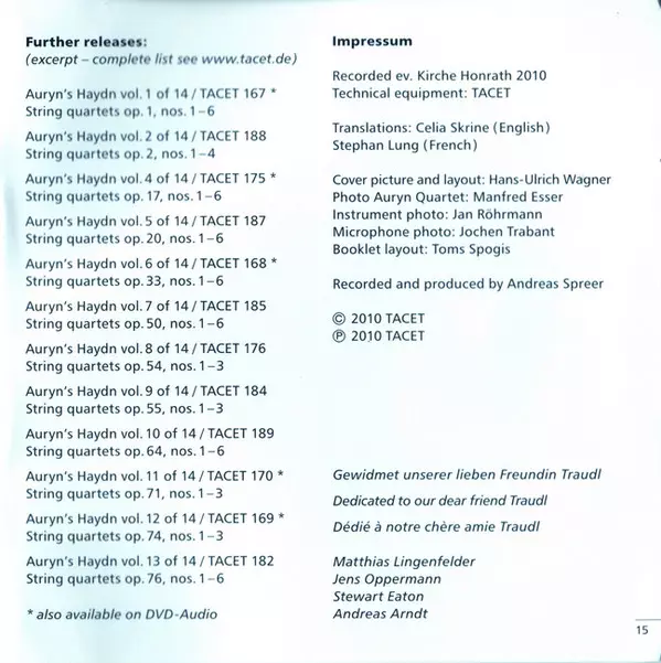 | Artiste | Joseph Haydn | Auryn Quartett |