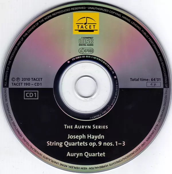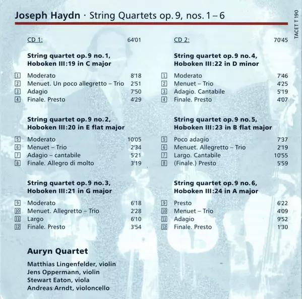 | Titre | Auryn's Haydn: Op. 9 (String Quartets ∙ Vol. 3 Of 14 Op. 9, Nos. 1 – 6) |
