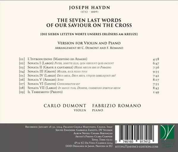 | Titre | The Seven Last Words Of Our Saviour On The Cross [Die Sieben Letzten Worte Unseres Erlösers Am Kreuze] (Version For Violin And Piano) |