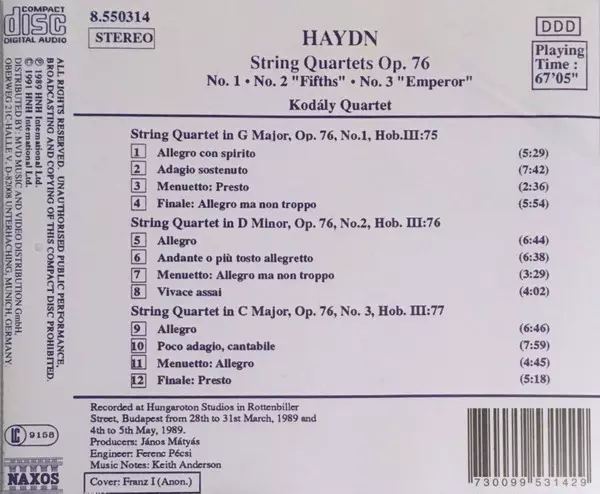 | Titre | String Quartets Op. 76 - No. 1 - No. 2 "Fifths" - No. 3 "Emperor" |
