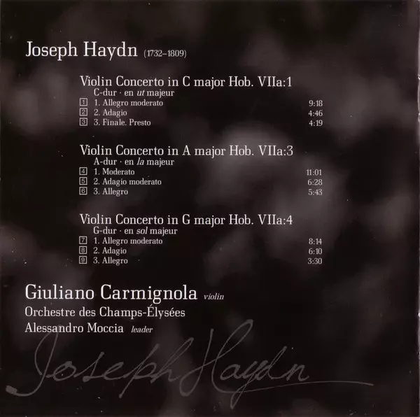| Artiste | Joseph Haydn | Giuliano Carmignola | Orchestre Des Champs Elysées |