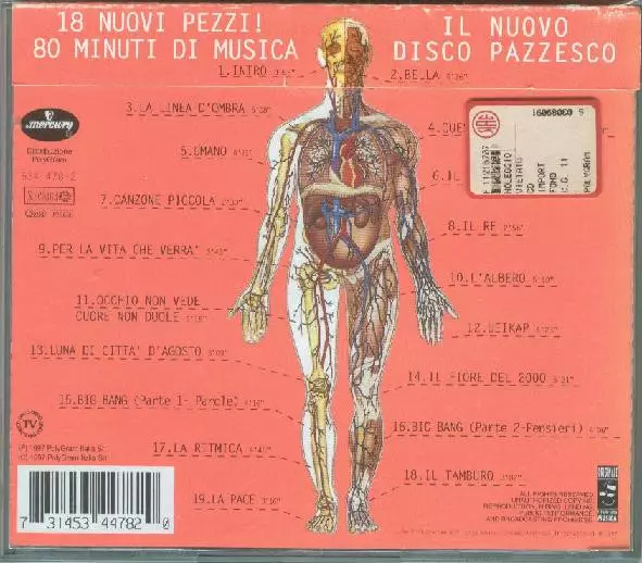 Jovanotti: Lorenzo 1997 - L'Albero La version sur CD en Norme édition. Cette édition particulière a été publiée en Italie dans la maison d'édition Soleluna En collaboration avec Mercury Le 20 octobre 1998. Album couvre tous les genres Pop, Funk / Soul, Hip Hop, Vocal et Pop-Rap.