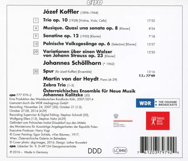 | Artiste | Johannes Kalitzke | Johannes Schöllhorn | Józef Koffler | Zebra Trio | Österreichisches Ensemble Für Neue Musik | Martin von der Heydt |
