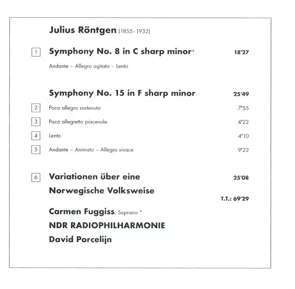 | Artiste | NDR Radiophilharmonie | David Porcelijn | Julius Röntgen |