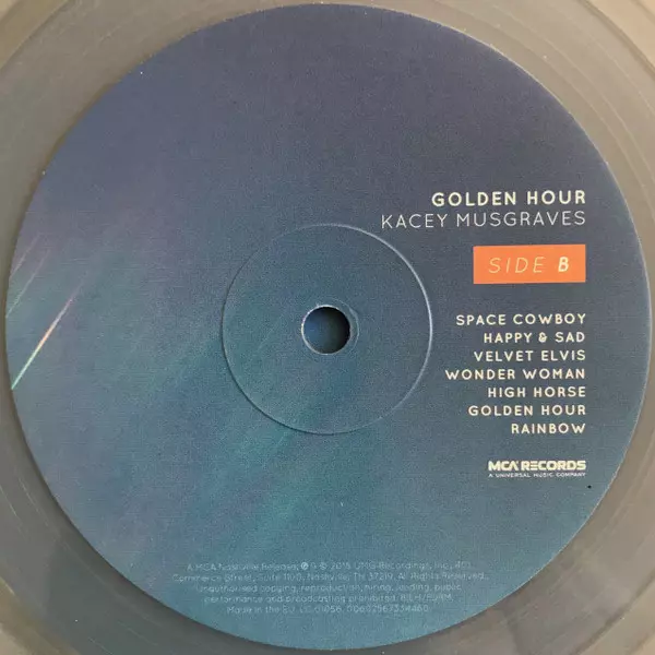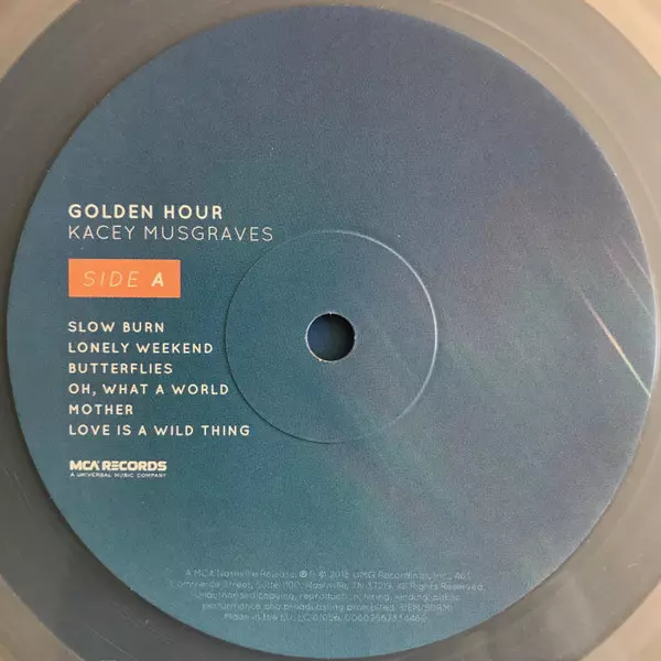 Kacey Musgraves: Golden Hour CLR La version sur Le vinyle LP en Coloré édition. Cette édition particulière a été publiée en L'Europe dans la maison d'édition MCA Nashville Le 4 mai 2018.