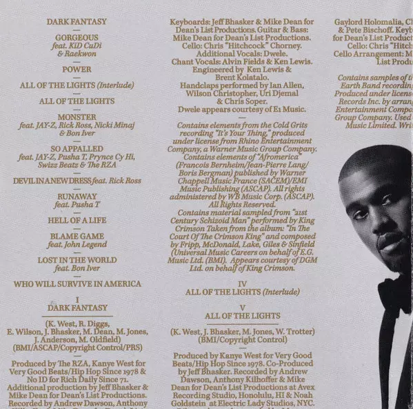 Co-producer Jeff Bhasker, Mike Dean | Featuring Bon Iver | Vocals [Additional] Alicia Keys, Charlie Wilson, Elly Jackson, K. Fox, Tony Williams (3) | Vocals [Chant] Alvin Fields, Ken Lewis