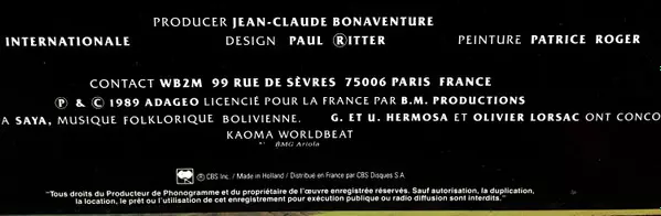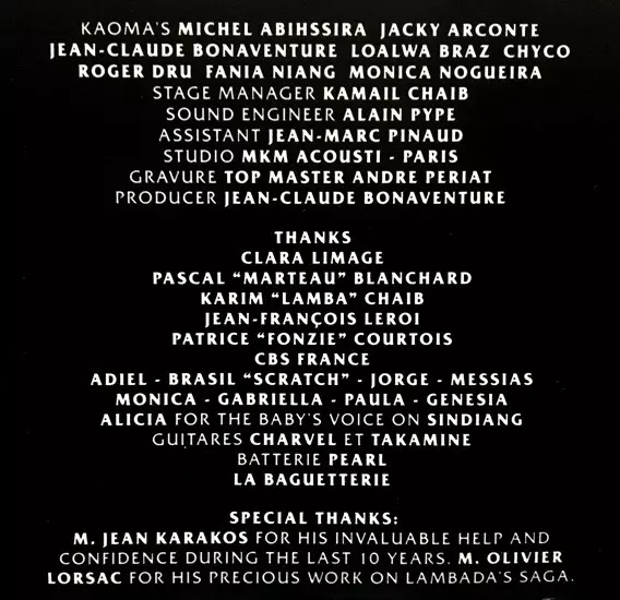 Backing Vocals Ann Calvert, Dada Hekimian, Debbie Davis | Bass Roger Dru | Drums Michel Abhissira | Electric Guitar Jacky Arconte | Keyboards, Computer Jean-Claude Bonaventure | Scratches Dee Nasty | Voice Fania