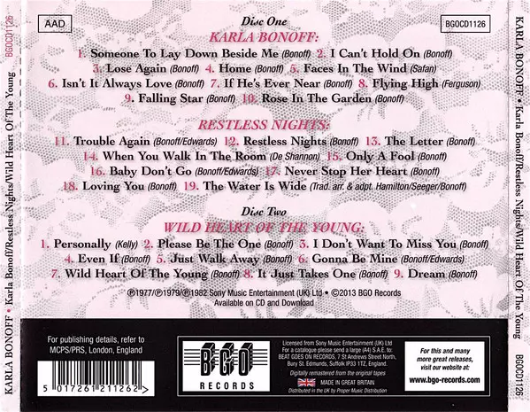 | Titre | Karla Bonoff / Restless Nights / Wild Heart Of The Young |