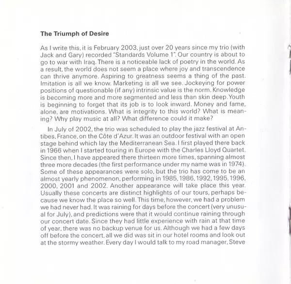 | Artiste | Keith Jarrett | Jack DeJohnette | Gary Peacock |